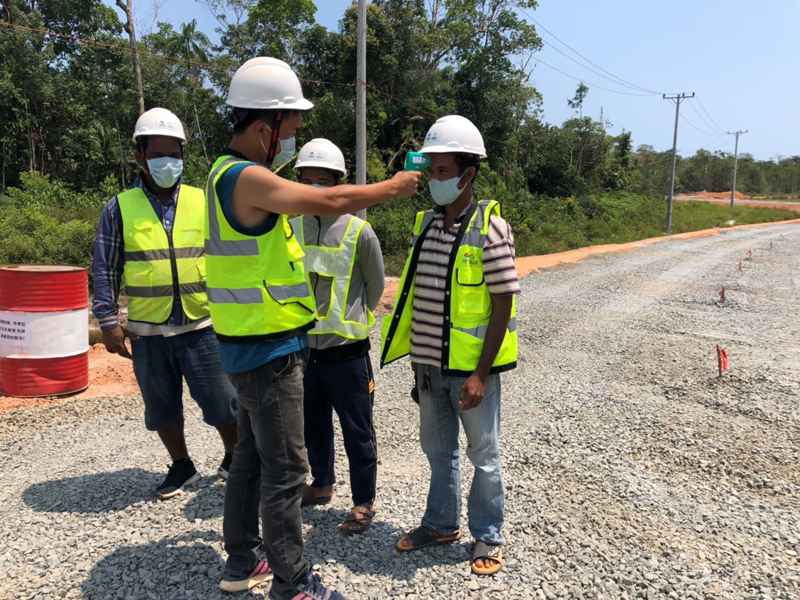 3月初,柬埔寨境內的新型冠狀病毒疫情確診數據持續上升,項目加大了管控力度,對營地與施工區設立圍擋,實行封閉化管理,外部人員和車輛因正常業務往來的需要對應部門自己到門衛處接送,其他人員和車輛一律嚴禁進入。