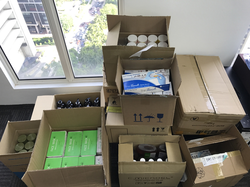 馬來西亞作為亞太區域總部所在地,1月25日發現了第一例新冠肺炎確診病例,3月18日馬政府開始在全國范圍內實行“行動管制措施”,目前疫情全面暴發,全國進入了緊張狀態。馬公司在區域總部的統一指揮下,在實行管制措施前已聯合各在建項目部統一訂購了270000個一次性醫用防護口罩,按照防疫工作要求確保滿足公司及各項目員工3個月的需求量;同時包括消毒劑、消毒噴霧、酒精洗手液、醫用防護手套等防疫物資全部按照3個月的標準儲備到位,各項防疫工作有條不紊地展開。