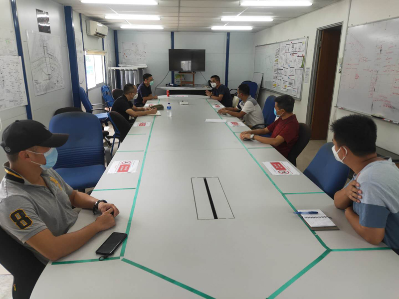 4月初,當(dāng)新加坡政府宣布關(guān)停所有非基礎(chǔ)服務(wù)工作場合時,新加坡代表處提早做好了準(zhǔn)備,通過微信建立起多方聯(lián)絡(luò)群,每日定時匯總員工體溫及健康狀態(tài),傳達(dá)集團(tuán)的防疫指示,組織觀看防疫培訓(xùn)視頻,并配合大使館和中資企業(yè)協(xié)會做好人員流動監(jiān)控。此外,各項目部定期為勞工營工人和本地員工派送生活物資和口罩,用實(shí)際行動關(guān)懷著員工,各國員工也堅定表達(dá)了與公司同舟共濟(jì)、共度難關(guān)的決心與信心。