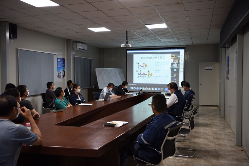 為引導(dǎo)員工科學(xué)認(rèn)識疫情、服從管理、安心工作,各項(xiàng)目部積極開展防疫知識宣講及抗疫形勢教育。4月24日,水電十一局邀請參加過湖北戰(zhàn)疫工作的三門峽黃河醫(yī)院黃敏副院長為玻利維亞艾爾西亞、MY69、伊比利蘇2標(biāo)3個在建項(xiàng)目開展疫情防控線上專題培訓(xùn),詳細(xì)講解了新冠肺炎防控知識,包括工作和生活區(qū)域防護(hù)和項(xiàng)目復(fù)工復(fù)產(chǎn)的防控知識。黃敏院長圍繞病毒傳播渠道、在施工現(xiàn)場的防護(hù)措施、食堂就餐、宿舍管理及工作區(qū)域消毒等員工迫切關(guān)心的問題進(jìn)行了全面系統(tǒng)的講解,并在線演示操作,確保項(xiàng)目員工掌握防疫知識要點(diǎn)。