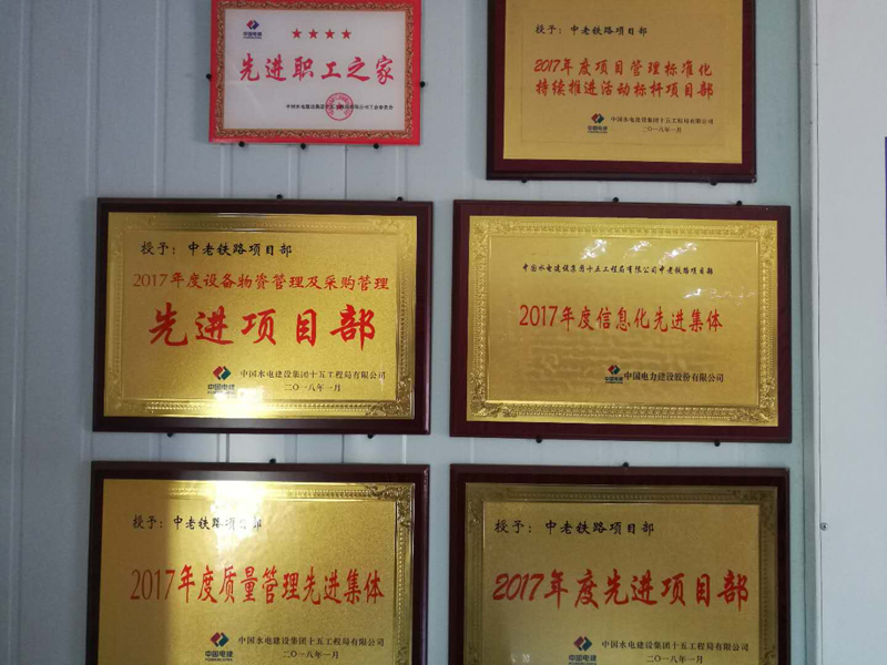 數(shù)十個(gè)榮譽(yù)獎(jiǎng)項(xiàng)赫然在列,講述著十五局人四年來在老撾奮斗的點(diǎn)滴過往。綜合辦公室主任自豪地介紹到,“這些只是項(xiàng)目獲得的部分榮譽(yù),其他表彰證書掛在了活動(dòng)室。”。