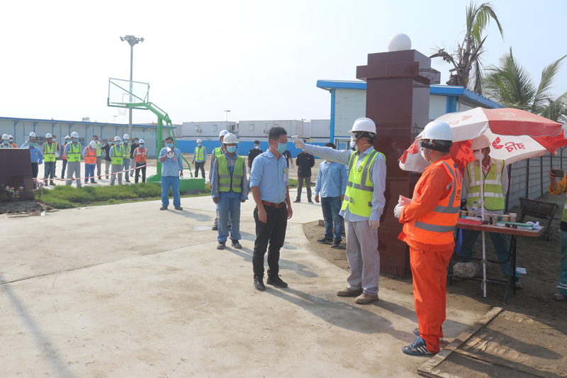 為保證現場進度,項目部提前策劃,設立3個孟籍隔離區(11個小區,可同時隔離480人),同時在各個隔離區設置攝像頭、安排24小時安保人員監督,杜絕無關人員靠近。為確保新進場人員的健康安全,項目部制定了詳細的《疫情期間新入場人員進場流程》,要求分包商人員在進場之前進行健康審查并提交《健康申報表》,在大門口處進行血清抗體檢測及問詢,并將同批次人員進場人員安排至同一區域的不同房間。