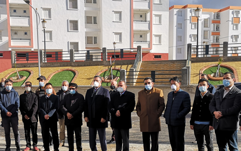 當地時間12月9日,阿爾及利亞蘇克哈斯省省長魯內斯?布澤格扎在省房管局、姆道魯什市政府領導的陪同下,到由中國電建承建的阿爾及利亞蘇克哈斯姆道魯什320套房建項目進行視察指導。