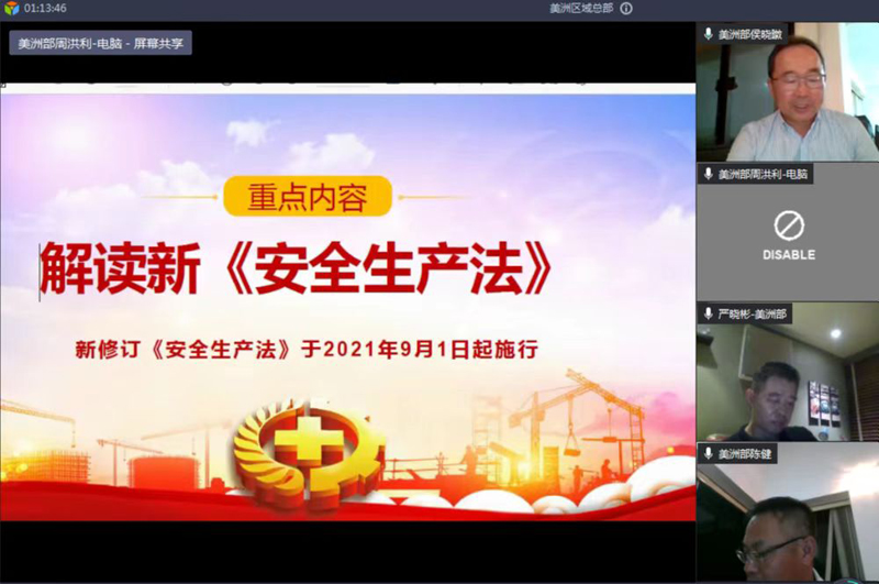 6月8日,公司副總經理、美洲區域總部總經理侯曉暾組織開展區域總部“安全生產月”啟動儀式,期間套開美洲區域總部2022年第二次HSE管理委員會會議。HSE管委會領導小組聽取了區域總部上半年安全生產管理工作完成情況以及下半年工作計劃,對繼續深入開展安全生產標準化、QHSE監督檢查和專項安全生產任務作出進一步安排,審議通過了管委會成員調整事宜?!鞍踩a月”啟動儀式上,侯曉暾切實履行“一崗雙責”“安全第一責任人”職責,結合“安全生產月”活動主題,深入解讀新《中華人民共和國安全生產法》,號召全體領導干部認真學習新安法規定,以優異的表現貫徹落實“三管三必須”。區域總部副總經理嚴曉彬傳達了集團公司深刻吸取事故教訓從嚴從實抓好事故防范工作的要求,深刻剖析了公司2022年以來發生的境外安全生產和社會安全事件,以沉痛的安全事件為教訓,為區域總部境外項目安全生產和保障人身安全敲響警鐘。
